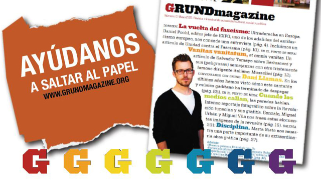 Grund es la palabra alemana para base, argumento, razón, motivo… Con este nombre, buscamos expresar lo que queremos, que GRUNDmagazine contenga “elementos fundamentales para la crítica” de la sociedad, de la cultura, de la economía, del arte… GRUNDmagazine es un pequeño proyecto editorial iniciativa de tres amigos, tres amigos que militamos política y socialmente y que buscábamos una plataforma abierta que nos permita trabajar con otra gente, de ámbitos muy diversos siempre desde abajo y a la izquierda. Intentaremos que GRUNDmagazine sea esa plataforma en la que aquel, aquella, que quiera, tenga un espacio en formato digital (y estamos trabajando también para que en formato papel) y muy atractivo en el que dejar por escrito sus argumentos, razones, motivos… Pero también fotografías y todo tipo de expresiones que puedan recogerse en una revista.